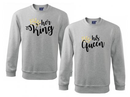 Pokud hledáte mikiny pro páry například s potiskem KING a QUEEN, tak jste zde rozhodně správně. Zde najdete v nabídce veškeré párové mikiny pro krále a královnu, motivy Prince a Princess a spoustu dalších nejprodávanějších mikin s motivy pro mladé páry. Naší výhodou je možnost volby potisku jak v bílé, tak i ve stříbrné a zlaté barvě. Mikiny King a Queen si tyto speciální barvy přeci zaslouží! Překvapte Vaší drahou polovičku originálním dárkem k narozeninám, na Valentýna, nebo jen tak.