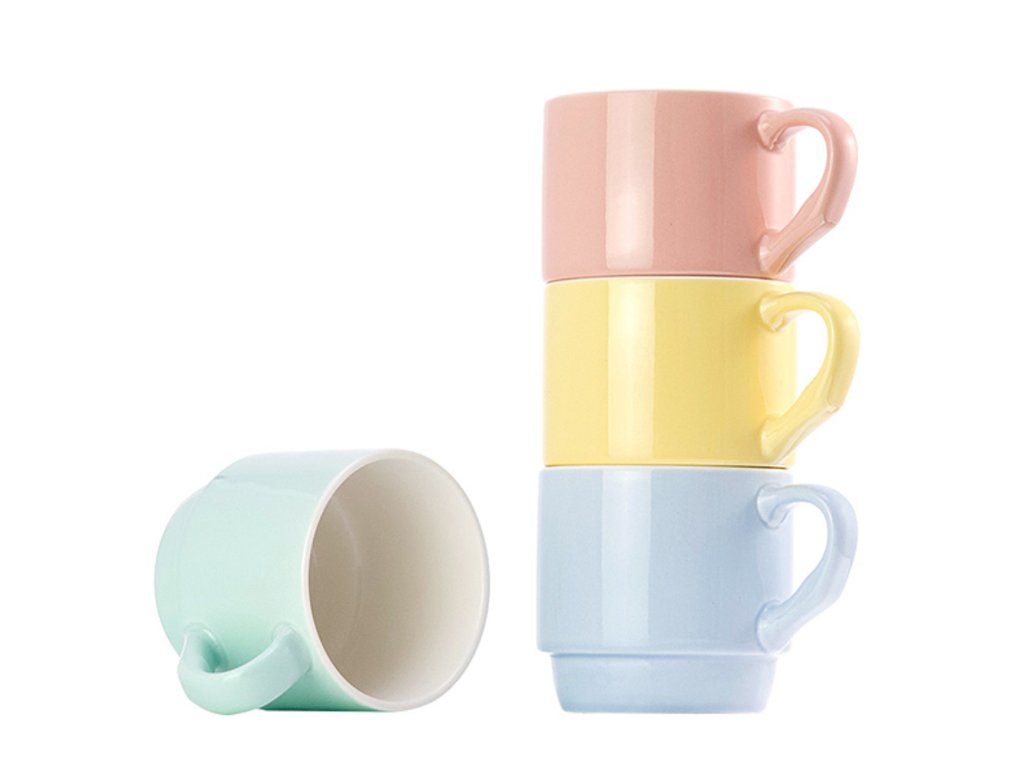 Barevný veselý stohovatelný hrneček s vtipným potiskem ZASRÁNO.