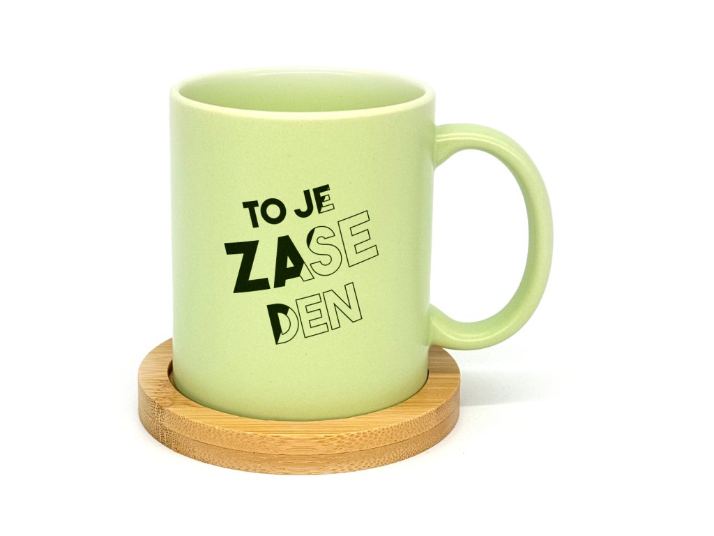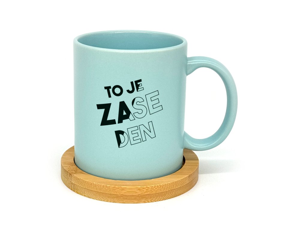 Barevný hrnek KLASIK MATNÝ v pastelových barvách s vtipným potiskem „TO JE ZASE DEN“.