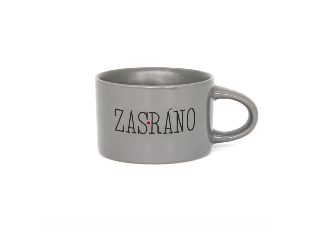 Barevný veselý hrneček makronka s vtipným potiskem ZASRÁNO